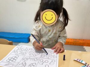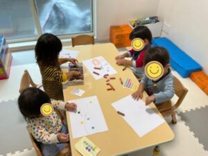 お部屋でシール貼りやお絵描きに集中しているお友だち😊