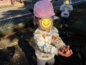 遊具で遊んだ後は、どんぐりや松ぼっくり、木の実などを拾いながら探索活動に夢中でした👀