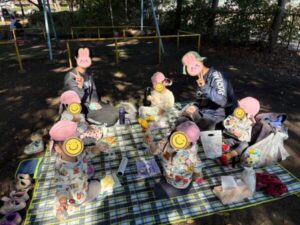公園に到着して、朝おやつを食べました!