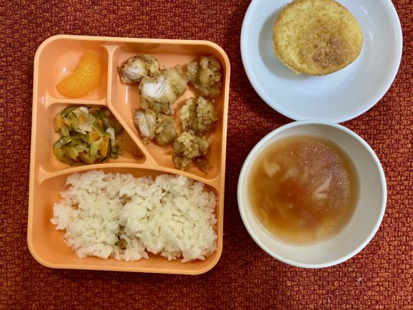 10/15の給食と午後おやつ 鶏肉の唐揚げ キャロットケーキ2025.10.15 給食✨ 鶏肉の唐揚げ ツナサラダ トマトスープ午後おやつ✨ キャロットケーキ今日はお弁当箱に入れてみました。わ〜!と喜んで蓋を開けていましたよ😄トマトスープ以外は😅みんな綺麗に食べてくれました。 Tweet Share10/10の給食と午後おやつ 鶏肉のトマトチーズ焼き りんごケーキ前の記事