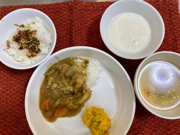 給食✨チキンカレー かぼちゃのサラダ スープ ヨーグルト