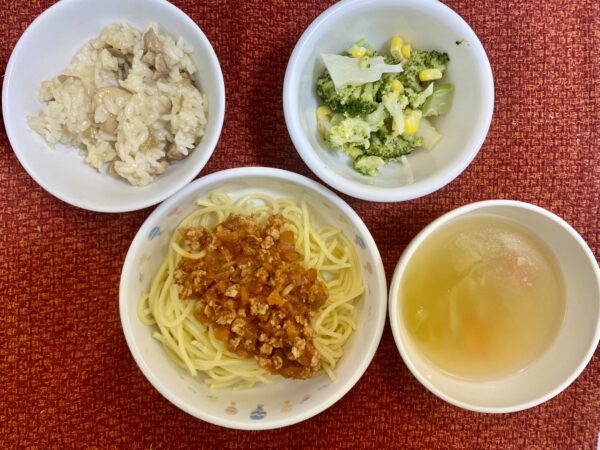 給食✨ ミートスパゲッティ ブロッコリーサラダ 野菜スープ