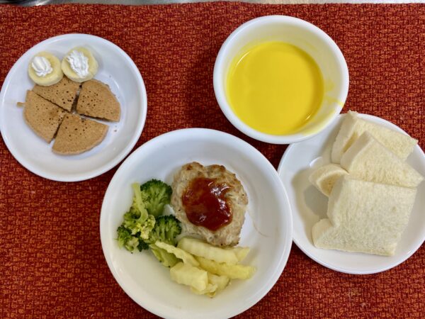 パンはいつものように大人気でした。ハンバーグも良くたべてくれました♪