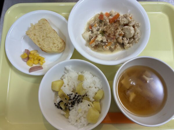 さつまいもご飯はみんなおかわりしていっぱい食べてくれました。午後おやつはコーンとソーセージを中に混ぜると苦手な子が多く別添えにしてみました😅